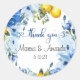 Agradeça seus convidados com este adesivo redondo de limão floral azul lindamente desenhado. Use em potes, latas ou na maioria dos recipientes de lembranças.