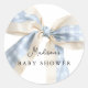 Adesivo Redondo Blue Gingham Checks Cute Bow Baby Shower