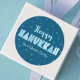 Adesivo Redondo Blue Happy Hanukkah Typografia Star Nome David
