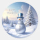 Adesivo Redondo Blue Hat Snowman Christmas Tree Holiday Sticker
