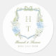 Adesivo Redondo Blue Hydrangea Crest Wedding Monogram
