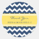 Casamento Obrigado A você favorece adesivos de etiqueta em azul-marinho escuro elegante, amarelo-limão, e padrão de riscas de chevron zigzag retrorado. Uma forma excelente de decorar favores de casamento ou de rotular vinho de casamento.