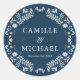 Preencha seus favores com este Blue Papel Picado Wedding Sticker! Com designs tradicionais e tons azuis ricos, é o toque perfeito e elegante para seu dia especial. Design do Partido Cava
