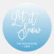 Blue Let it Snow Holiday round sticker com as palavras "Let it Snow" (Deixe-o nevar) em um script de pincel divertido contra um fundo de gradiente azul. Faz um excelente de Natal / feriados de inverno. Veja outros itens de feriado aqui https://www.zazzle.com/collections/holiday_christmas_new_year_cards-119015800351034065?rf=238364477188679314 Personalize-o substituindo o texto do marcador de posição. Para obter mais opções, clique no botão "Personalizar". *Observe que a Marca d'água do Zazzle que aparece na visualização de zoom NÃO aparecerá no produto impresso final. © Rosewood e Citrus