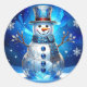 Adesivo Redondo Blue Snowman Snowflakes Holiday Sticker
