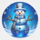Adesivo Redondo Blue Snowman Snowflakes Holiday Sticker