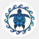 Design da tartaruga azul-oceânica inspirada por tatuagens tribais polinésias no centro de um símbolo Maori Sun.
