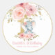Adesivo Redondo Blush Floral Cute Elephant primeiro aniversario On