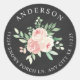 Adesivo de endereço de devolução redondo Rustic Chalkboard Blush Floral Greenery. Veja a coleção para itens relacionados (olhe logo abaixo da imagem principal.)