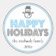 Adesivo Redondo Boas Festas Snowman Favor Sticker (Azul / Cinza)