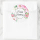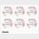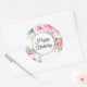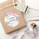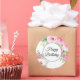 Um adesivo grande redondo de feliz aniversário é mostrado com um bonito impressão floral cor-de-rosa. Personalizar ou comprar como está.