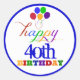 Parabéns Vinheiros Coloridos Balões do Partido com diferentes letras coloridas para a palavra "Parabéns" em cores primárias e uma borda azul real em volta do círculo. Adicione a idade do partido que você está celebrando substituindo o texto de exemplo do "40º" pelo seu. A palavra "feliz" está em uma fonte divertida de escrita manual e a palavra "aniversário" está em letras negrito. aniversário de 40 anos, autocolantes de 50 anos, autocolantes de 60 anos, autocolantes de 70, autocolantes de aniversário