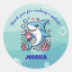 Adesivo Redondo Boba Shark Cute Kawaii Rosa Obrigado
