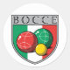 Este gráfico colorido Bocce apresenta três bolas de Bocce em um escudo sobre a bandeira italiana de verde, branco e vermelho com a palavra Bocce.