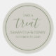 Um simples rótulo de adesivo de agradecimento com uma escrita de caligrafia de casamento, uma escrita de caligrafia de casamento em verde salvia, um modelo minimalista de "pegue um presente", um favor de festa de rótulo adesivo criativo, um bufê de doces barra de biscoito fofo, um simples círculo minimalista de escrita, um chic caprichoso personalizado, rótulos criativos e elegantes, uma recepção simples e limpa, suprimentos para festa de recepção de casamento, para recepção de casamento com decoração de tipografia de texto cinza.