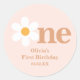 Adesivo Redondo Bohemian Pink One Daisy primeiro aniversario