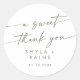 Este boho verde-chic e branco um doce obrigado que você prefere um adesivo redondo clássico é perfeito para um casamento minimalista. A design boêmica moderna e verde-oliva neutra apresenta uma caligrafia rustica simples com um estilo único, mas clássico. Personalize seus adesivos de favor com seus nomes e data de casamento.