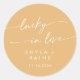 Este boho amarelo marigold sortudo em amor pelo clássico adesivo redondo é perfeito para um casamento minimalista. A design boêmica moderna, colorida e amarela brilhante, apresenta uma caligrafia rústica simples com um estilo único, mas clássico. Personalize seus adesivos de favor com seus nomes e data de casamento.