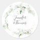 Com uma terra verde de jardim, sonhadora e etérea, de folhas, samambaias e vinhas em volta dos nomes da noiva e do noivo, este adesivo tem um belo apelo de vassoura. Personalize com os nomes da noiva e do noivo ou qualquer texto que desejar. Estes adesivos estão disponíveis em 2 tamanhos. O menor tamanho de 1/2 polegada de diâmetro é uma escolha de excelente para usar como selagens de envelopes ou em pequenos favores de presentes. O tamanho maior de 3 polegadas de diâmetro faz uma escolha de excelente para favores, presentes e decorações de pacotes.