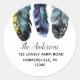 Esses adesivos de etiquetas de endereço de volta redondos dobram como selos de envelope e são perfeitos para enviar convites de casamento ou outra correspondência. Eles apresentam uma ilustração de estilo 'boho' das penas de aves em uma aquarela vibrante com seu nome e endereço abaixo.