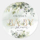Adesivo Redondo Boho eucalyptus gold letters Chá de fraldas sticke