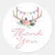 Adesivo Redondo Boho Floral Antlers & Shabby Rosa Party Obrigado