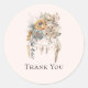 Muito obrigado, colantes com um bonito buquê de flores em cores neutras de castanho, pêssego e laranja. Um apanhador de sonhos com penas adiciona um elegante talento místico.