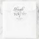 Moderno minimalista de casamento Obrigado Oferece o favorito clássico do Round Sticker, em escrita romântica, pequeno coração bonitinho, com assinatura de noiva e noiva e data de casamento, em tema preto e branco.