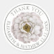 Elevate your wedding details with this beautifully crafted round “Thank You” sticker, featuring an original watercolor flower in soft off-white tones. Its clean white backdrop enhances the delicate botanical artwork, creating a refined and versatile design suited for modern, rustic, boho, or garden-inspired celebrations. Personalize the text with your names and wedding date to make it uniquely yours. Perfect for sealing envelopes, adorning favor boxes, styling welcome bags, or adding an elegant finishing touch to your overall wedding stationery suite.