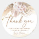 Boho Pampas Grass Obrigado Sticker Redondo Clássico. Pode ser usado em qualquer ocasião, como aniversários, chá de bebê, chá de noiva, casamentos e muito mais.