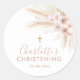 Adesivo Redondo Boho Pampas Menina Rosa Batismo Floral Christening