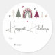 Celebre a alegria da estação com este arco-íris e corações, feriados mais felizes, de um adesivo redondo clássico. O script editável exclusivo e chic cria um toque de charme e individualidade. Seu design simples apresenta arco-íris boêmico colorido, corações e árvores de Natal que evocam um ambiente de inverno caprichoso. Com um layout limpo e minimalista, este impressão captura a essência de dezembro em estilo e graça.