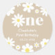 Boho Retro Daisy primeiro aniversario Classic Round Sticker