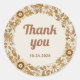 Esse obrigado de casamento tendencioso que vocês colam ou preferem apresenta uma coroa de flores e folhas na moda-retrógradas em cores neutras vintage como marrom, bege, ouro, verde-oliva e creme de marfim com texto retrô.
