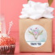 Obrigado, colantes com um fundo de turquesa e de aquarela pastel. Um crânio bicho-papão com um buquê floral sobre sua cabeça e pequenas borboletas se espalhando. Uma bela borda decorativa com pequenas formas de lágrimas em azul claro.