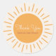 Este giro, simples e bonito raio de sol do boho apresenta o texto Obrigado em uma tipografia monolina com script e uma linha de texto adicional para personalizar para seu evento ou produto. Isso funciona com o excelente do nosso pacote de convite para chás de fraldas de sol Boho