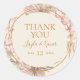 Este boho botânico tropical | obrigado de marfim você favorece o adesivo redondo clássico é perfeito para seu elegante casamento floral rústico, verde, pêssego, rosa dourado. Design apresenta um quadro de ouro ou buquê com a relva pampas rosa-pincel moderna, simples sábio, marfim, folha de palma de champanhe e verde clássico de praia. As flores podem incluir rosa-rosa e orquídea. O design é ideal para uma típica vintage terracotta, bege, ferrugem, inverno, primavera, casamento outono. Por favor, encontre outra papelaria de casamento no resto da coleção.
