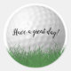 feche uma bola branca de golfe na grama verde com saudação alegre