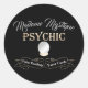 Esta etiqueta adesiva personalizada apresenta um tema psíquico místico sobre um fundo preto. Uma imagem de uma bola de cristal é colocada no centro, com duas faixas abaixo dela. Um exemplo de serviço Palm Readings é impresso no primeiro banner e Tarot Cards no segundo. Você pode personalizar o adesivo para incluir seu próprio texto personalizado. Uma amostra do nome do meio Madame Mystique está impressa no topo. A palavra Psychic é impressa em uma elegante fonte dourada. É perfeito para presentes de Halloween.