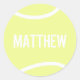 Essas adesivos redondos são coloridos para se parecerem com uma bola de tênis em amarelo brilhante e estão prontos para serem personalizados com seu nome em letras brancas em estilo desgastado.