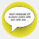 Faça uma declaração com este produto atraente que apresenta um modelo de bolha de fala retrorbranco com um fundo de meio tom pontilhado de quadrinhos (mostrado aqui em amarelo) que você pode personalizar com seu próprio texto. As retornos de carruagem podem ser usadas entre palavras conforme necessário para ajustar melhor a disposição tipográfica de sua mensagem dentro da bolha de fala, conforme desejado.