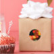 ADESIVO REDONDO BOLHAS FRACTAIS AMARELAS DE LARANJA VERMELHA