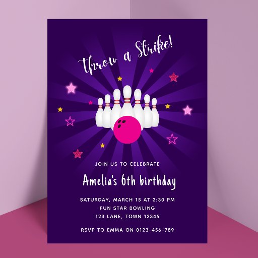 Obrigado seus convidados festas de aniversário com aqueles adesivos de favoritos com tema de boliche editáveis que contêm pinos de boliche, uma bola e estrelas rosa, roxa e amarela. Perfeito para crianças, rapazes e raparigas que adoram a diversão das boliches! Itens correspondentes disponíveis.
