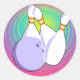 Três saias de boliche sendo derrubadas por uma bola de boliche.