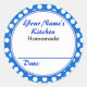Estes etiquetas de colocação em latas personalizadas caberão sobre seu doce de vidro, geléia, e preservarão tampas do frasco. Você pode igualmente usá-los para selar as bolsas de seu produtos de forno. Têm uma imagem de um teste padrão azul da beira das bolinhas. Você pode mudar a cor do fundo se você quer.