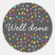 Bem feito em ensinar adesivo com um design simples e bonito de bolinhas de aquarela coloridas ou manchas. Design moderno limpo. Whimsical, boho e divertido, Brilhante e colorido. Sobre a cinza para um olhar bonito e limpo. Obrigado, bonitinho.