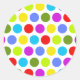 Bolinhas coloridas aleatórias sobre um fundo branco.