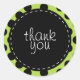 obrigado de bolinhas, seus adesivos. Esta design apresenta um círculo preto com efeito de costura, contendo as palavras Obrigado, contra um fundo verde vibrante e bolinhas preta. Copyright © Lisa Marie Robinson. Todos os direitos reservados. É ilegal usar ou duplicar isso, ou qualquer uma de nossas imagens, sem permissão por escrito.