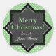 Padrão de bolinhas verde festivo com estrela preta e texto verde em adesivos redondos. Personalize com sua própria mensagem de Natal. Excelente de ficar em presentes como um alternativo para etiquetas de presentes.