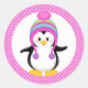 Adesivo Redondo Bolinhas rosa Menina de Pinguim de inverno